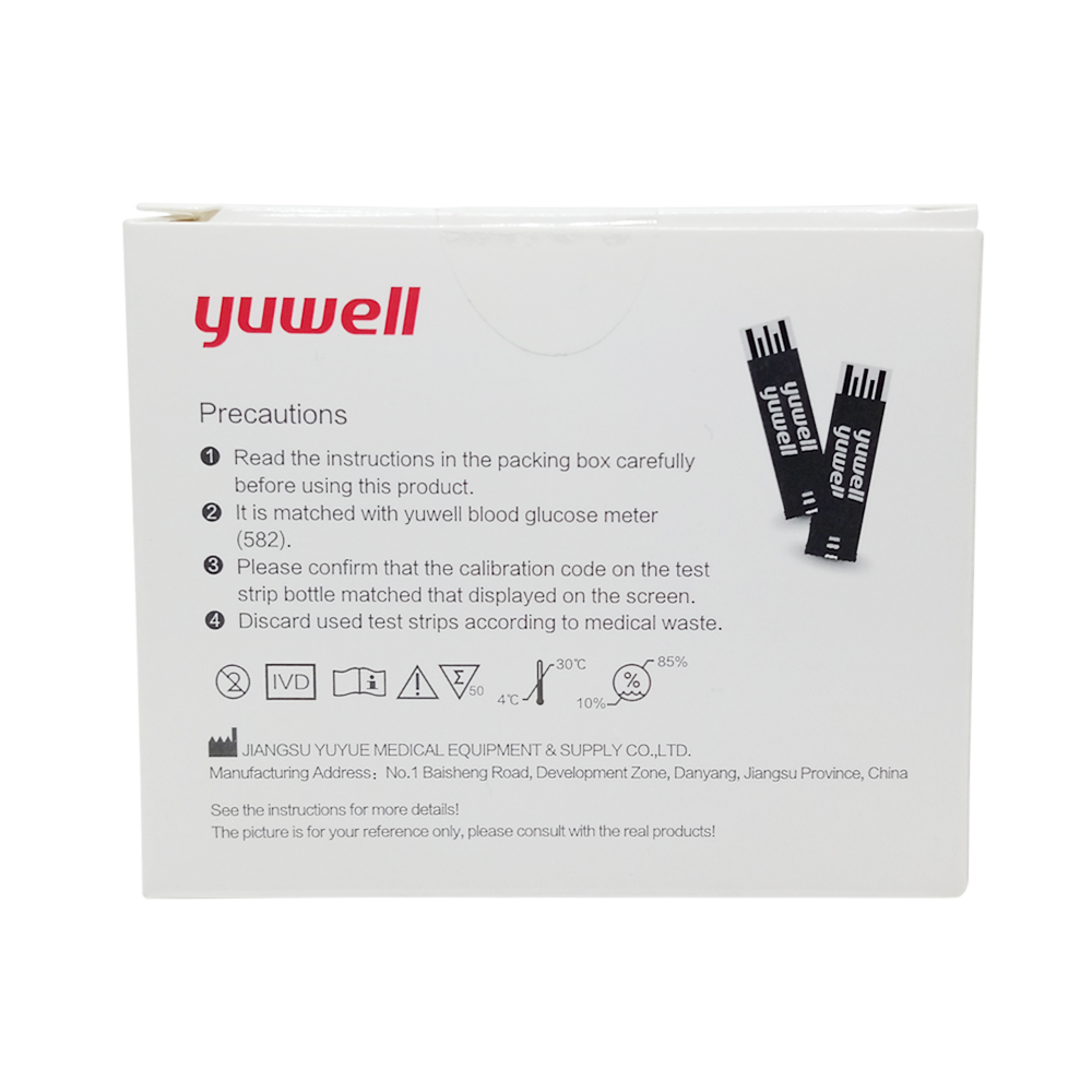 Tiras Reactivas La línea de glucómetros Yuwell, tiene cajas de repuestos de 50 tiras.