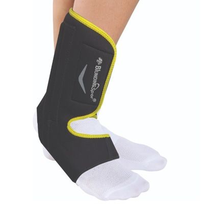 Soporte de tobillo, confeccionado en Neopreno Respirable, con estabilizadores laterales flexibles de aluminio y ajustable con cierre velcro.